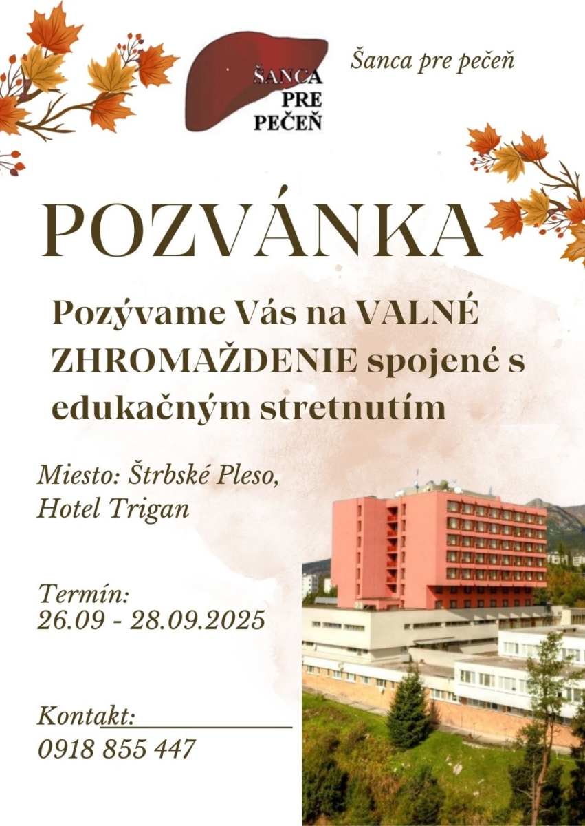 Tohto roku sme sa v dňoch 26.09. - 28.09.2025 opäť stretli v hoteli Trigan na Štrbskom Plese. Stretnutie bolo spojené s valným zhromaždením, s vyhodnotením štvorročného volebného obdobia OZ, voľbou nového predsedníctva a samozrejme s edukačno-relaxačným programom.