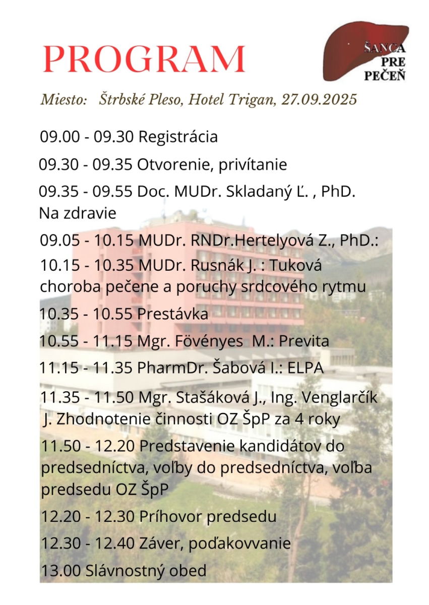Ako prvý sa auditóriu prihovoril MUDr. J. Rusnák s témou „Tuková choroba pečene a poruchy srdcového rytmu“. Prednáška bola zrozumiteľná pre každého člena OZ a vychádzala z praxe lekára. Na jeho vystúpenie nadviazala RNDr. Z. Hertelyová, PhD., z pohľadu vedecko-výskumného pracovníka v odbore klinická biochémia. Okrem iného pozornosť upriamila aj na Hepkalkulačku, ktorá vyhodnocuje riziko steatózy, fibrózy a cirhózy pečene a samozrejme na manažment pacienta.