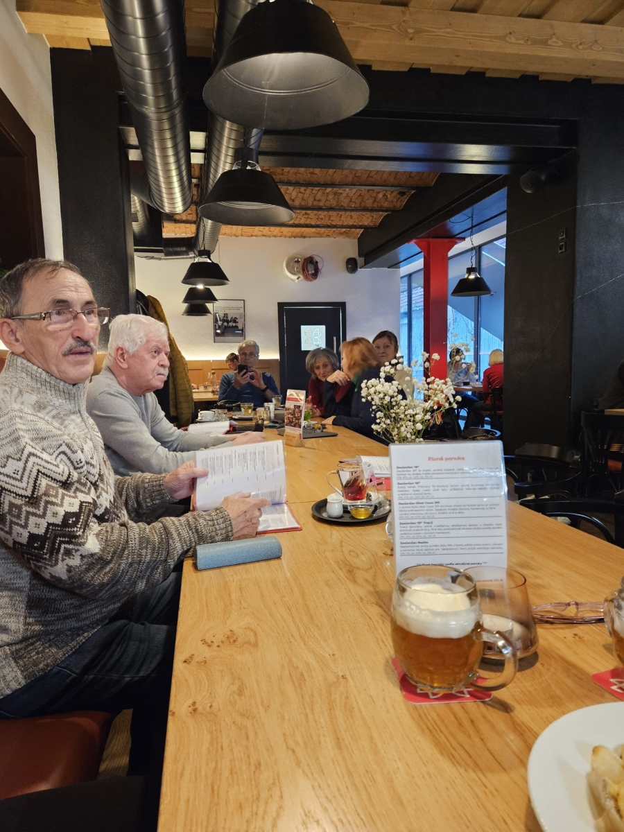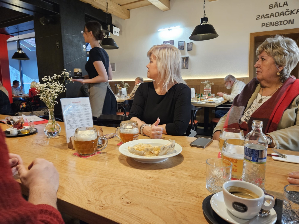 Neskôr sa skupina presunula do neďalekej reštaurácie, kde stretnutie pokračovalo v teple a pohodlí interiéru. Účastníci si našli čas na dlhšie debaty, výmenu zážitkov a úprimný smiech, ktorý patrí k takýmto stretnutiam. Bolo to príjemné zastavenie uprostred každodenných povinností a zhonu pred Vianocami.